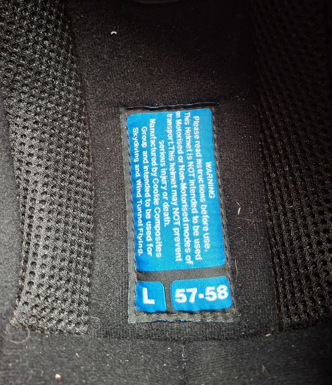 Cookie G4 Skydiving Helmet. Very good to excellent condition. Size Large 57-58.