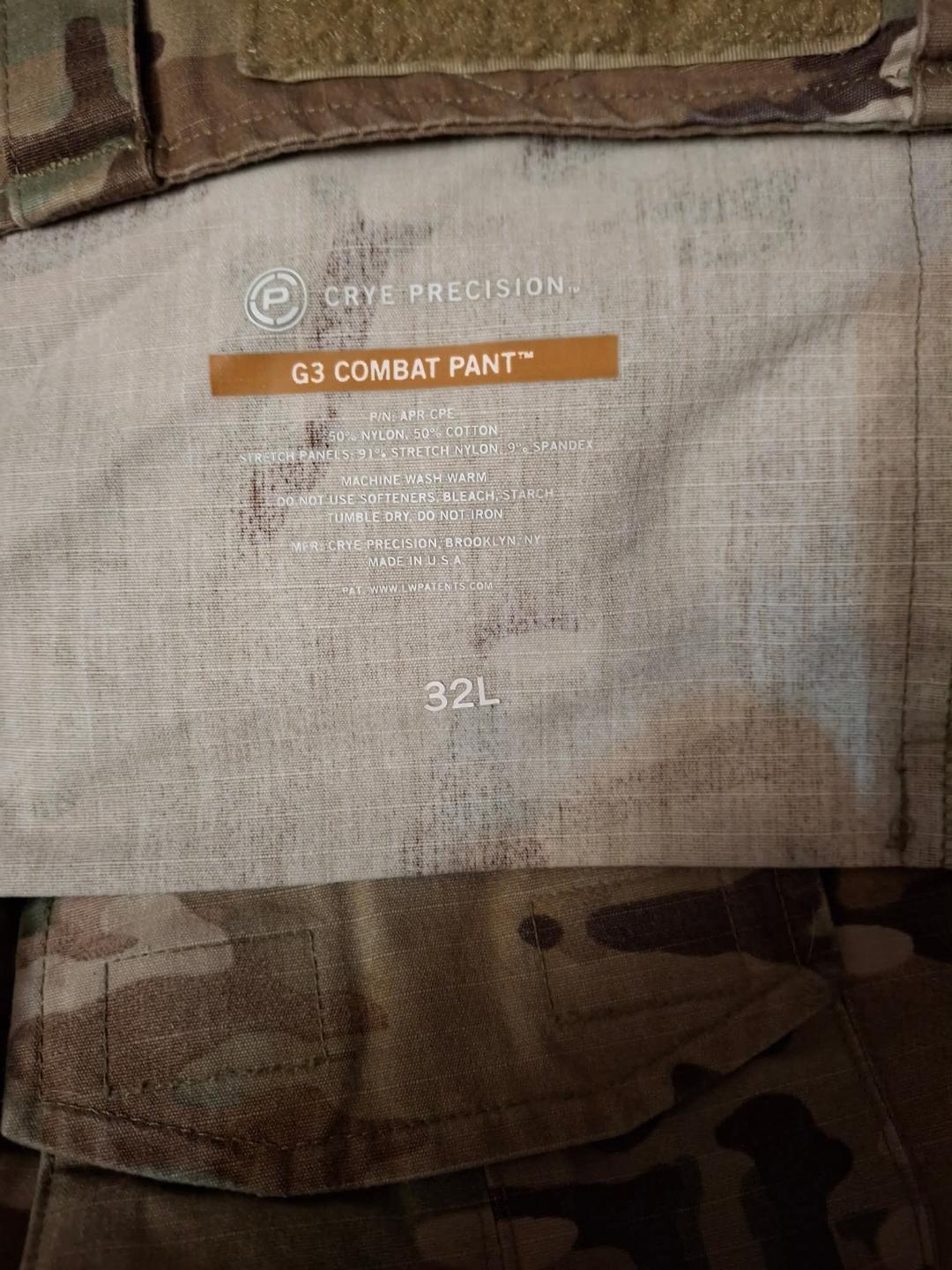 Crye Precision G3 Combat Pants. Good to very good condition. Light fading and some small pulls on seat. Please see pictures. Size 32L.