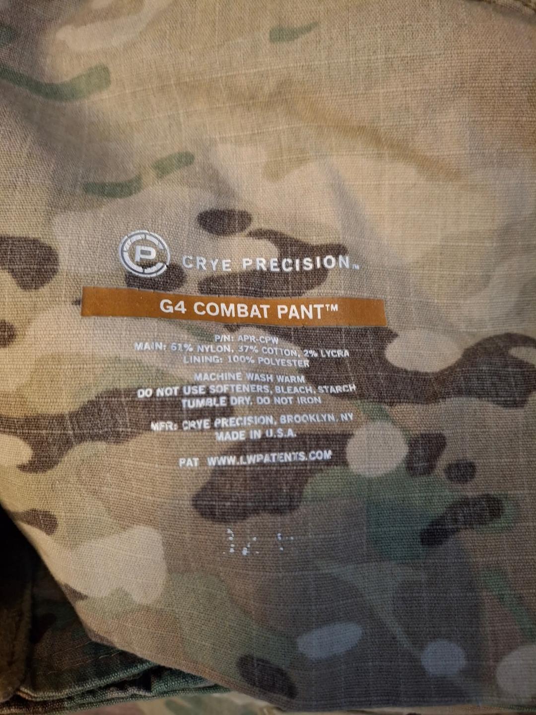 Crye Precision G4 Combat Pants. Good condition, some fading and 2 professional repairs. Please see pictures. These have lots of like left in them, great for beating up during training or playing airsoft. Size 32R.