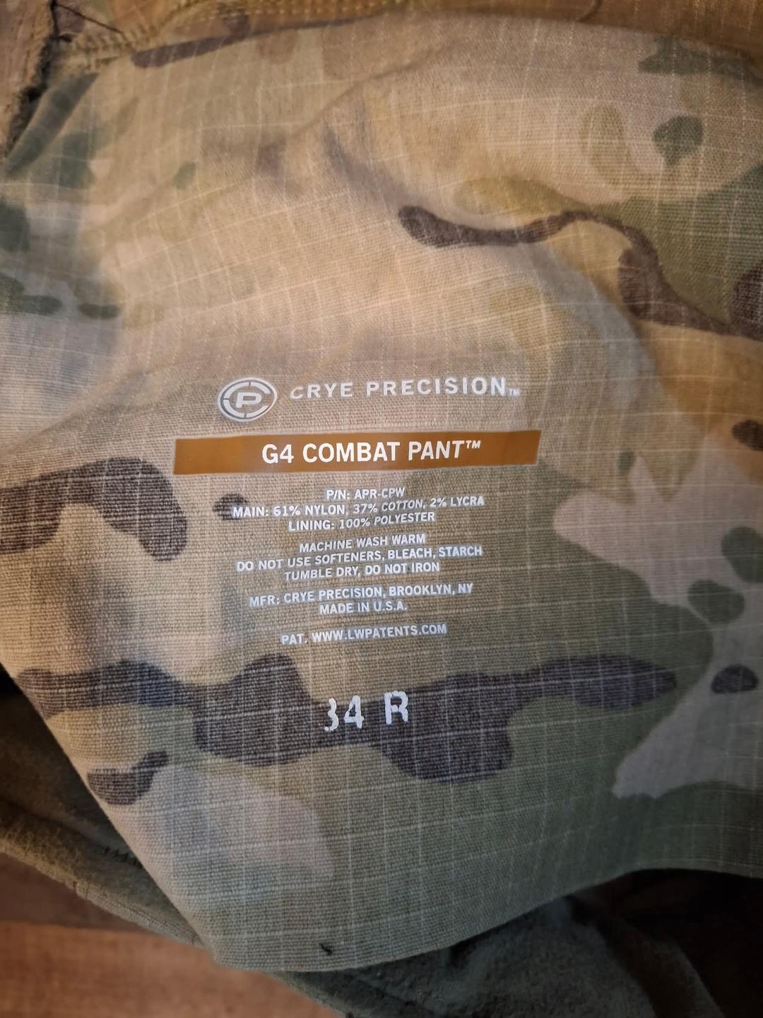 Crye Precision G4 Combat Pants. Good to very good condition. Small pilling by waist closure minor fading. Please see pictures. Size 34R.