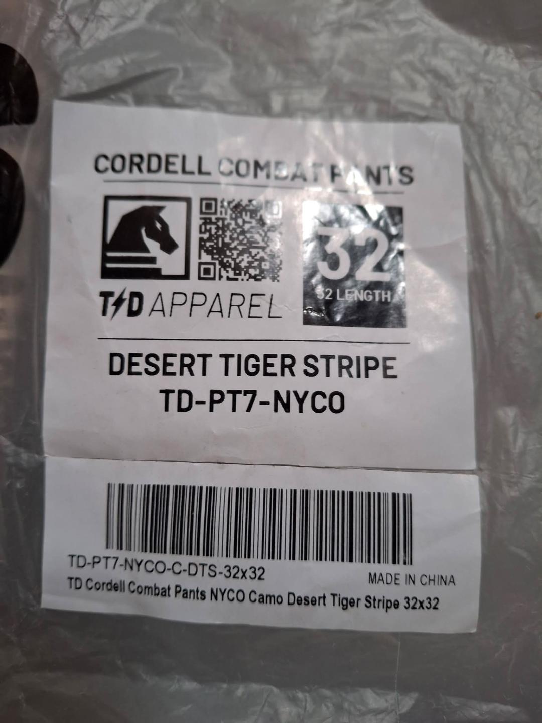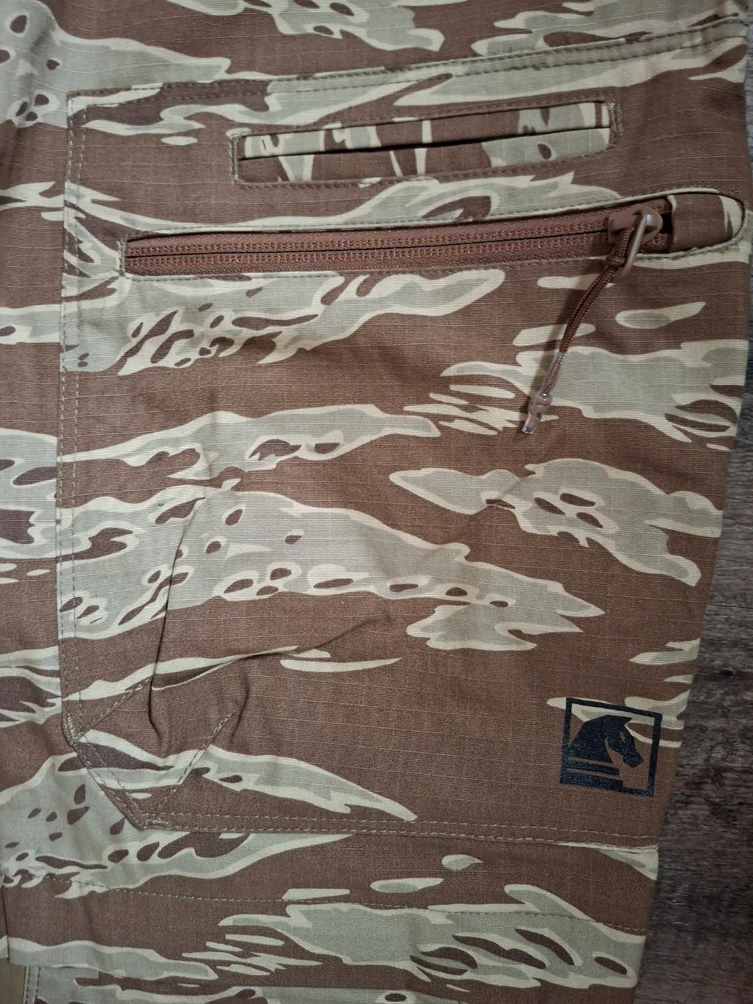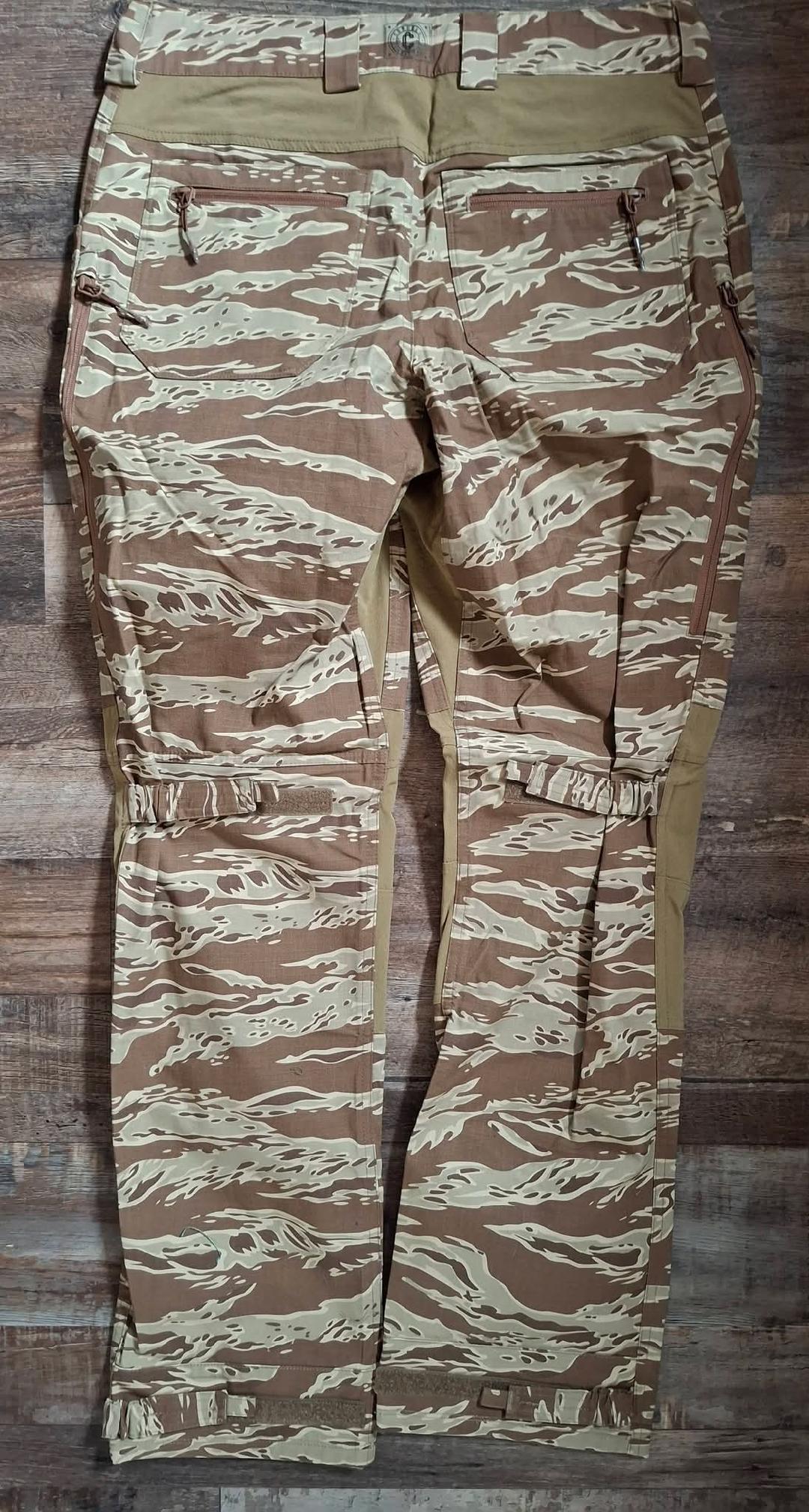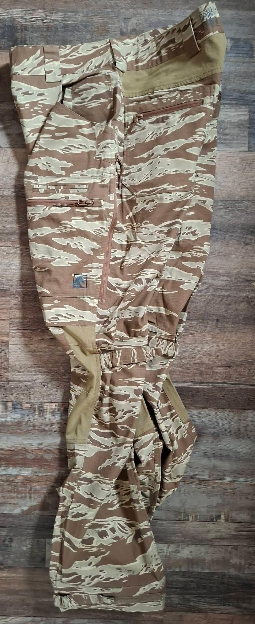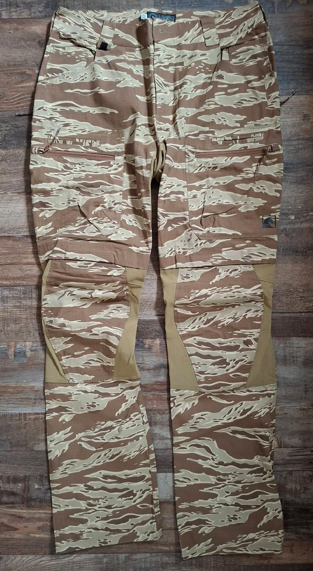 TAC-DIS Cordell Combat Pants. Brand new in wrapper. Desert Tiger Stripe. 32″ waist 32″inseam. NYCO Ripstop.