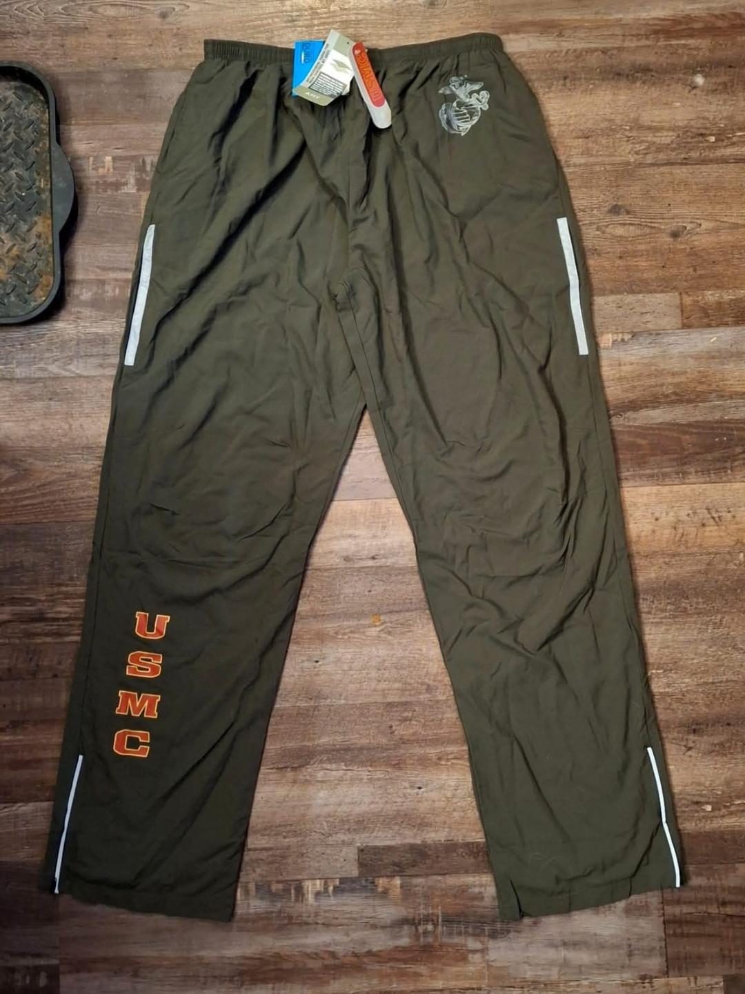 USMC issue PT running pants, new in wrapper. Unissued. Size extra large. Great for gym workouts, jogging and even lounging around!